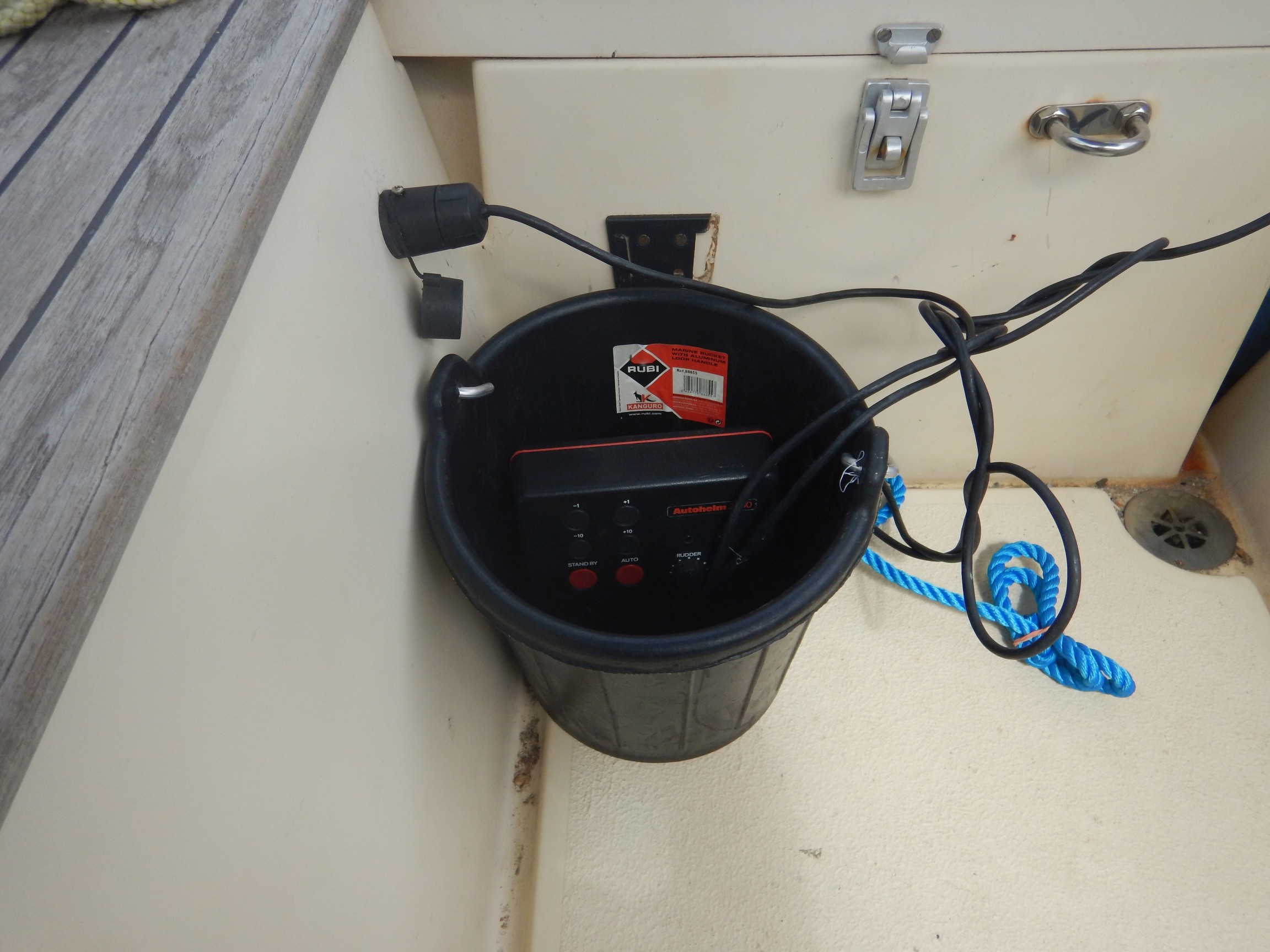 Die neu gefundenen Undichtheiten wurden (hoffentlich alle) beseitigt. Eine Schicht Glas/Epoxy im Ankerkasten, Püttinge neu eingebettet, usw. usf.. Das Navtex wurde repariert und alle Kabel, die aus dem Mast ins Boot gehen, haben jetzt wasserdichte Steckverbinder über Deck statt Lusterklemmen unter Deck.