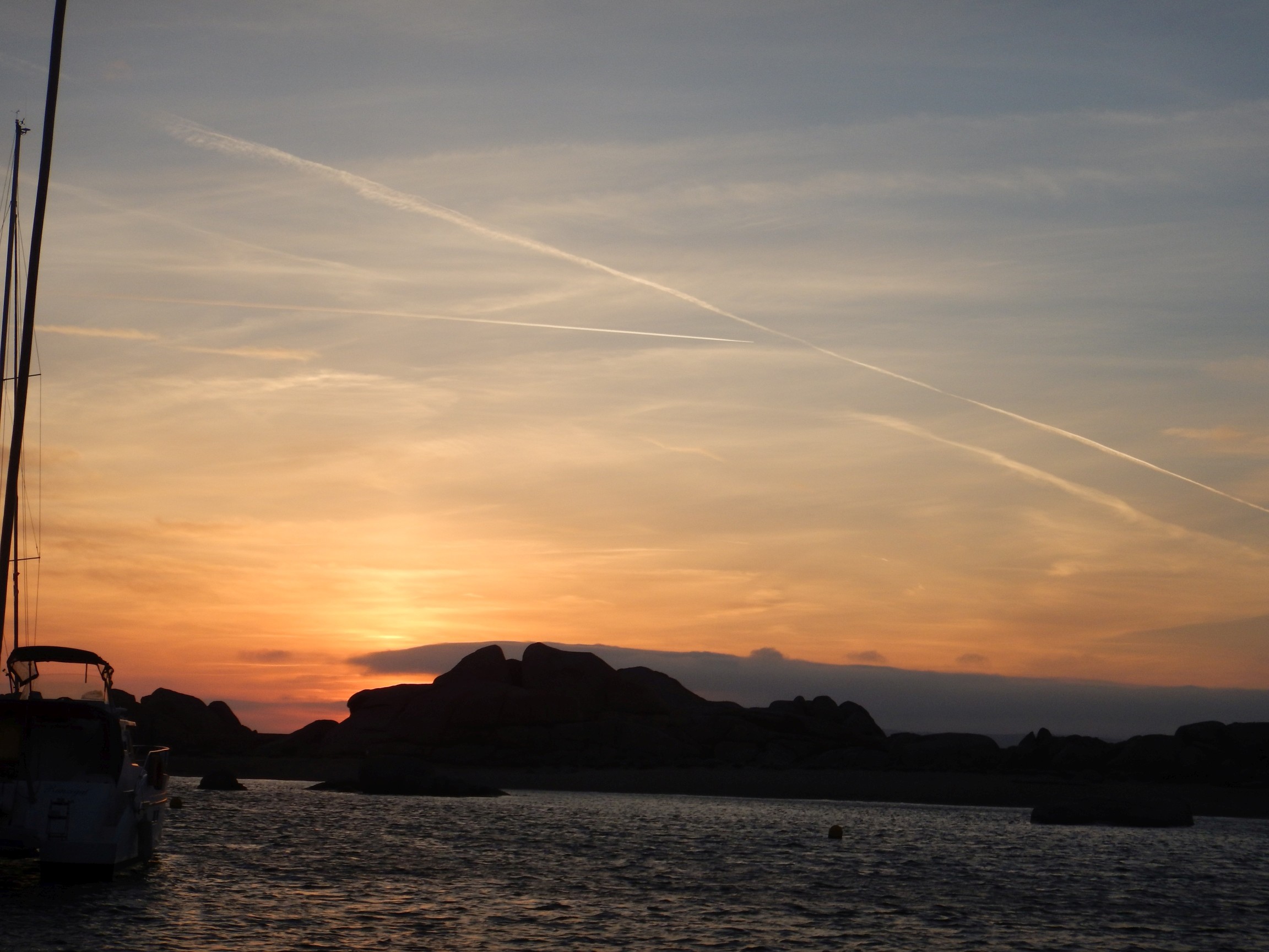 Von hier ab wirds wieder seglerisch traumhaft. Etliche Ankerbuchten und noch ein Stück weiter die Straße von Bonifacio und das Maddalenen-Archipel. Der Wind hat auf südlich gedreht und wir haben erstmals den Wind nicht von hinten. Wir kreuzen ein paar Seemeilen und lassen den Anker im Golfo di Pinarellu fallen. Eine kurze Erkundungsfahrt der Bucht im neuen Dinghi (das Alte begann sich aufzulösen) kommt zu einem jähen Ende, weil unerklärlicherweise ("jaja, der Tank ist halbvoll") plötzlich der Benzin ausgeht. Somit werden die neuen Paddel gleich miteingeweiht.