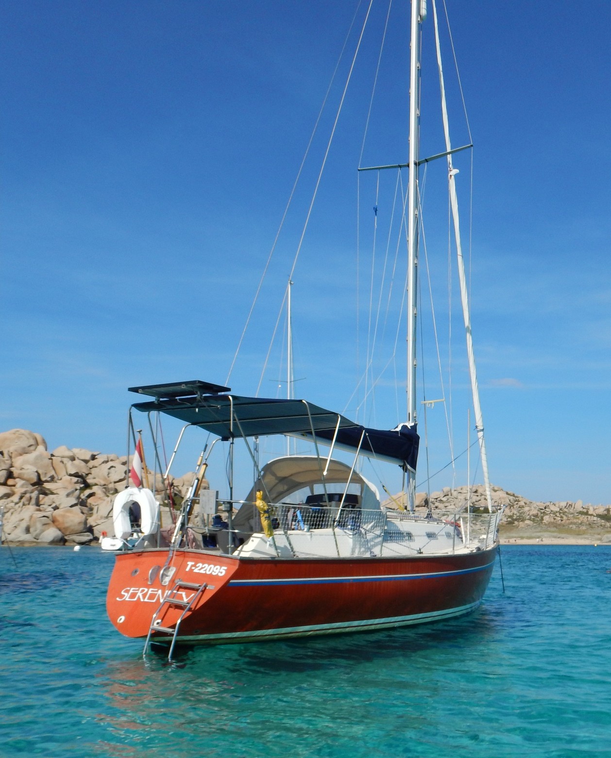 Von Westen her segeln wir in den Zwickl zwischen den Inseln Razzoli, Santa Maria und Budelli und legen uns an eine der wenigen Bojen. Die untiefe Durchfahrt nach Süden nennt man Deadman's Reef. Ein verdammt paradiesischer Spot. Auch hier kehrt Ruhe ein, sobald die Ausflugsschiffe und die Stinkpotter am Nachmittag abziehen. Hier bleiben wir mal kurz.