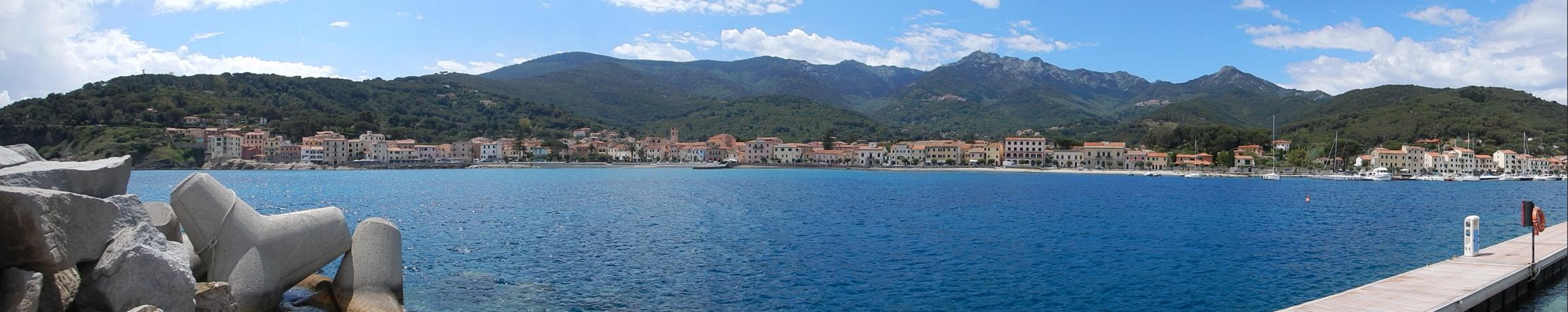 Marina Marciana auf Elbas Nordseite ist ein schnuckeliger kleiner Ort mit einem Hafen, der gegen den angesagten Starkwind aus SW gut geschützt liegt. Wwir buchen uns gleich für zwei Nächte ein und wollen den heftigen Wind mit angesagtem Regen und Gewitter mit einem gemütlichen Hafentag ein Schnippchen schlagen. Wettervorhersagen sind ja unserer Meinung nach inzwischen erstaunlich genau. Auch diesmal stimmt es fast. Nur die Richtung des Windes ist dann halt doch eine andere. NW 8-9 beaufort im Hafen. Fein, dass wir noch am Vortag endlich unser Windmessgerät am Mast montiert haben ("eine Reparatur pro Tag", bzw. "ein Ding mehr reparieren, als wir kaputt machen" lautet das motto). So war unsere zweite Nacht etwas unruhig - was an unserer kleinen Leichtmatrosin im Gegensatz zu uns völlig spurlos vorüberging.