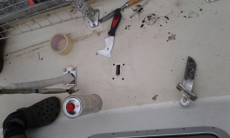 Unterwegs bricht uns die Halterung des Autopiloten. Die Bruchstelle scheint bereits einmal geklebt worden zu sein. Tja. Jetzt muss unser tapferer Steuerman "Helmut, der Pinnenpilot" seine Arbeit aus dem Schlagpütz heraus erledigen.