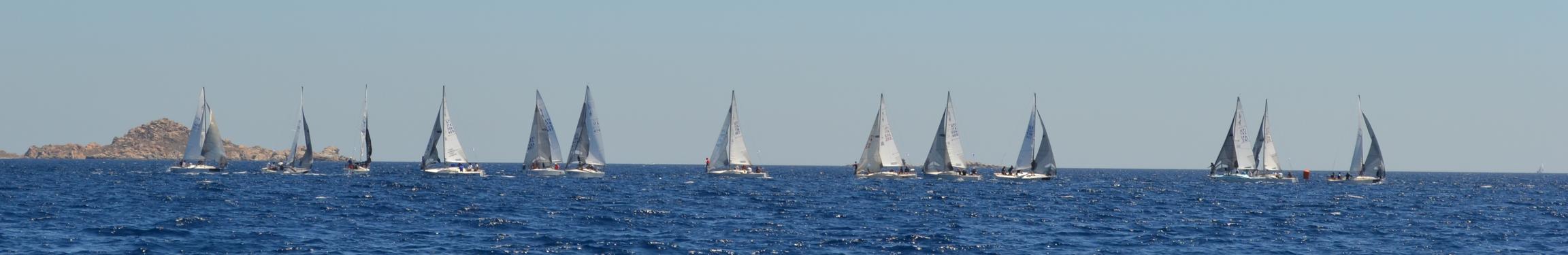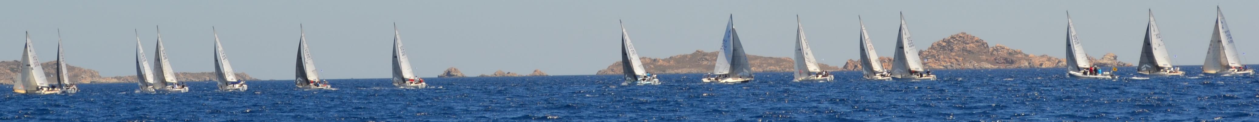 Die Distanzen zwischen den Buchten sind hier so kurz, wir überlegen uns aus reiner Freude am Segeln die Isola Spargi zu runden, bevor wir den Anker irgendwo beim Dead Man's Reef fallen lassen. Auf dem Weg dorthin kreuzen wir die Bahn einer der unzähligen Regatten, die in diesem Segelrevier stattfinden. Wir haben diese Boote bereits in Maddalena getroffen, es scheint sich um eine italienische J24 Meisterschaft zu handeln. Zum Glück ist der Startschuss noch nicht abgegeben und wir haben Zeit uns aus der Bahn zu begeben. Hinter der Startlinie drehen wir bei und beobachten den hektischen Start.