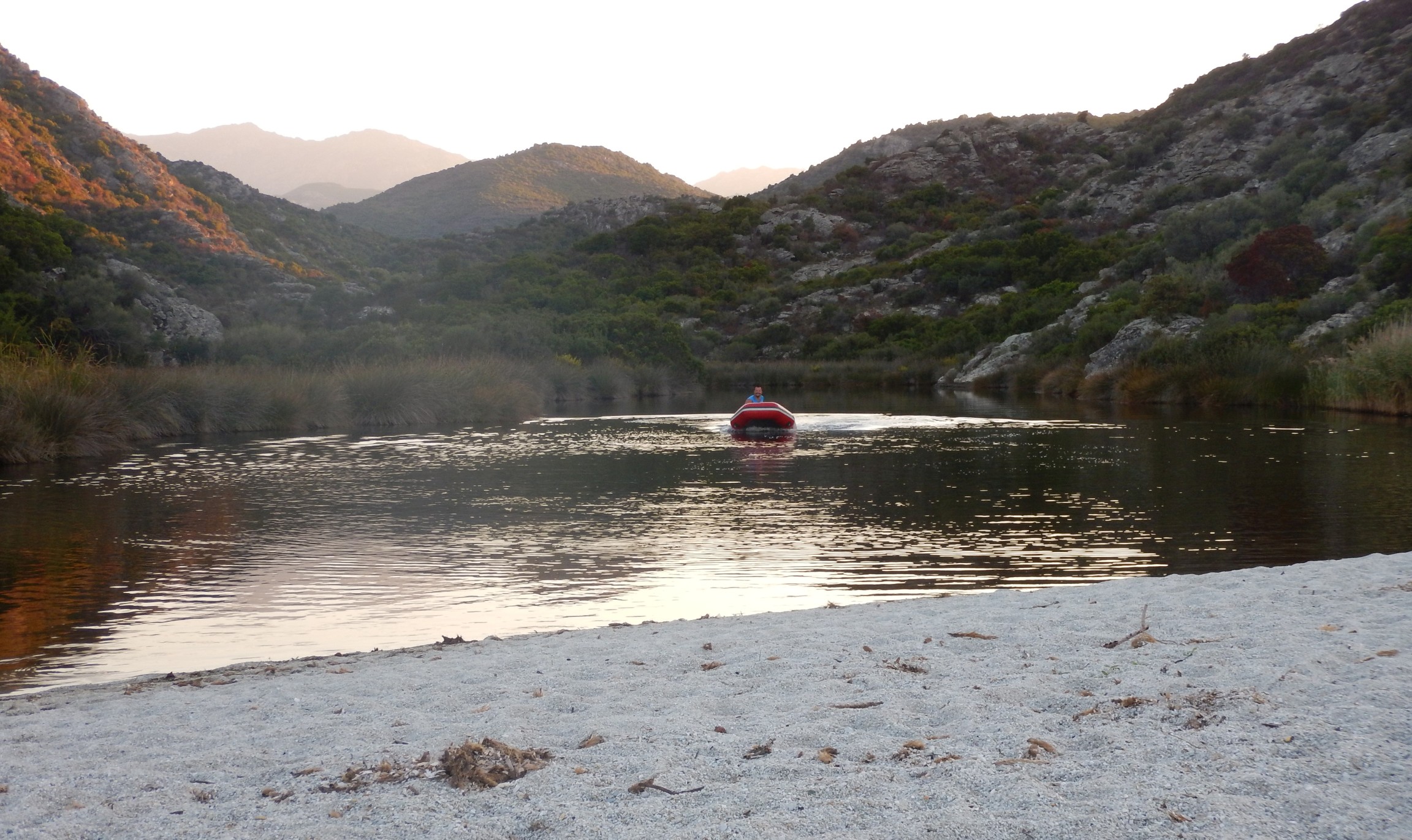 Wir werfen den Anker in der Bucht von St. Florent und erkunden das Hinterland mit dem Dinghy. Diese Forschungsexpedition kostet einen Schuh, der im Morast verloren geht.