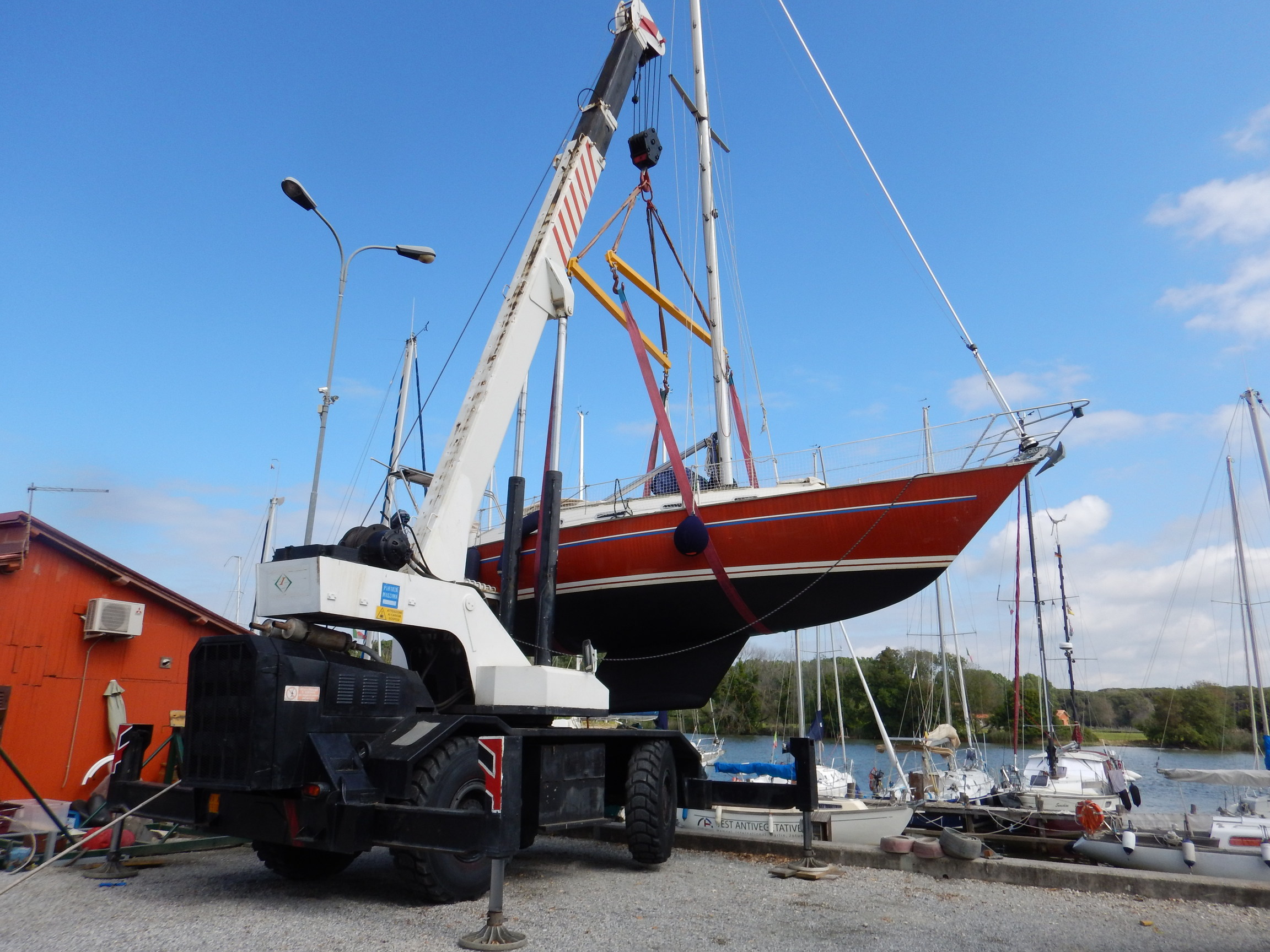 Natürlich beginnt jeder gute Törn mit einer ungeplanten Reparatur. Dass die Starterbatterie ersetzt werden muss, war uns klar und gleich erledigt. Die Servicebatterien haben aber leider auch schon deutlich bessere Zeiten gesehen, schon nach kurzer Belastung ist der Saft raus. Alte raus, neue rein. Aber wie bei allem auf einem alten Boot bleibt das meistens nicht bei der einfachen Lösung. Die Batterieklemmen sind vermutlich besser in einem Museum aufgehoben, als an einer Batterie. Nichts gekrimpt, mit der Litze in ein Röhrchen und dann direkt mit einer Schraube drauf. Gut also auch wieder neue Kabel krimpen lassen. Die restliche Crew vergnügt sich derweil am Strand von Marina di Pisa.
